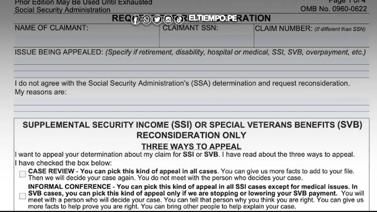 El formulario SSA-561 permite a los beneficiarios del Seguro Social apelar decisiones como: