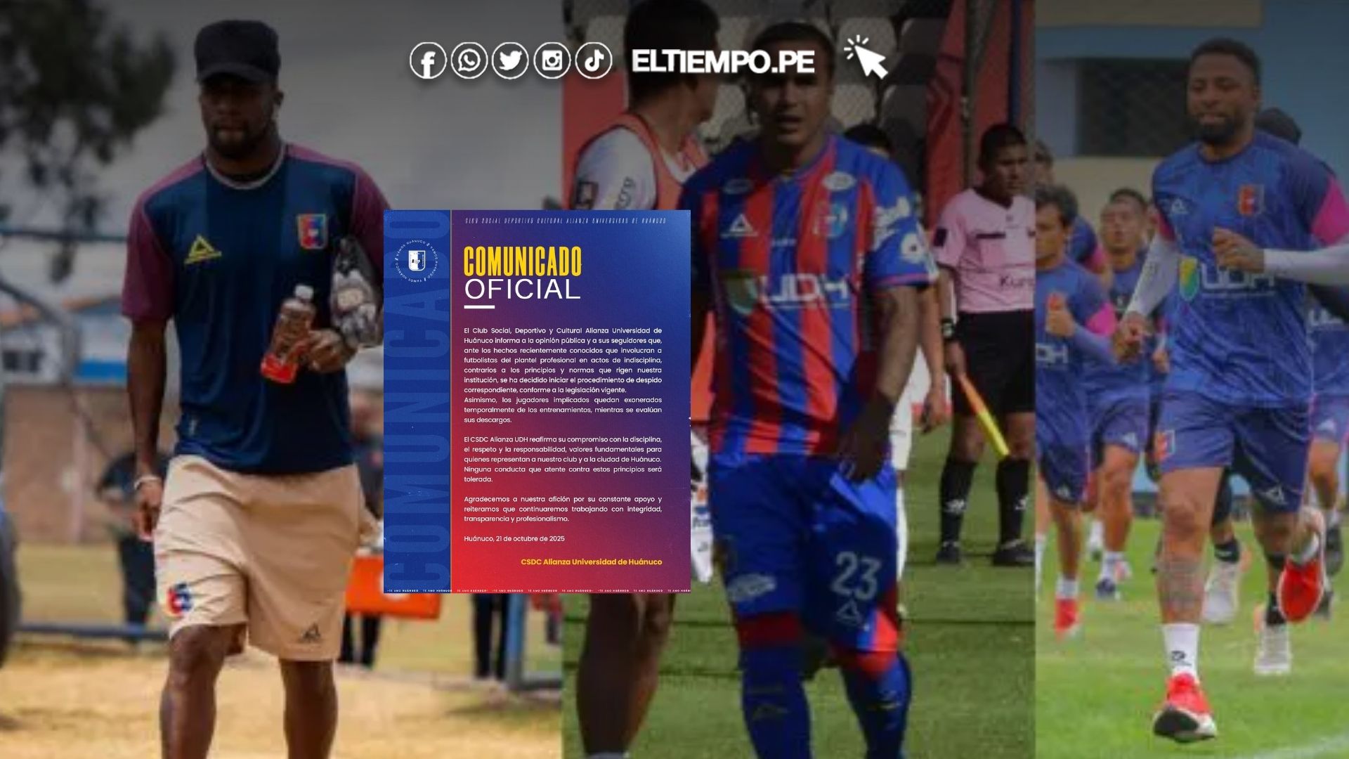 “El Club Social, Deportivo y Cultural Alianza Universidad de Huánuco informa a la opinión pública y a sus seguidores que, ante los hechos recientemente conocidos que involucran a futbolistas del plantel profesional en actos de indisciplina, contrarios a los principios y normas que rigen nuestra institución, se ha decidido iniciar el procedimiento de despido correspondiente, conforme a la legislación vigente”, señala el comunicado.