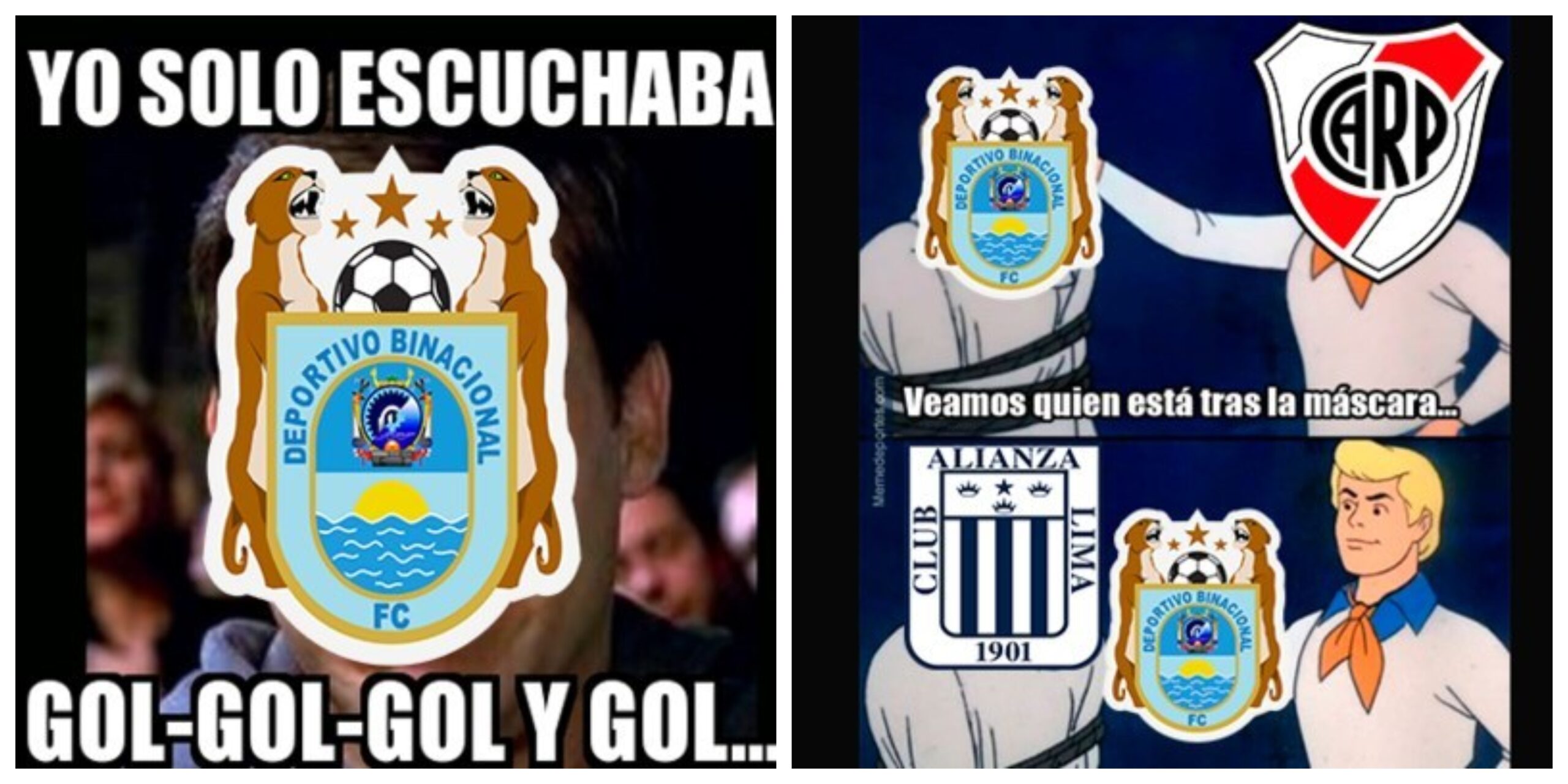 En otro meme se ve a Binacional lamentándose por la estrepitosa goleada «Yo solo escuchaba gol, gol y gol». Por otra parte, también lo comparan con Alianza Lima, pues también perdió ante el ‘Millonario’ en Argentina.