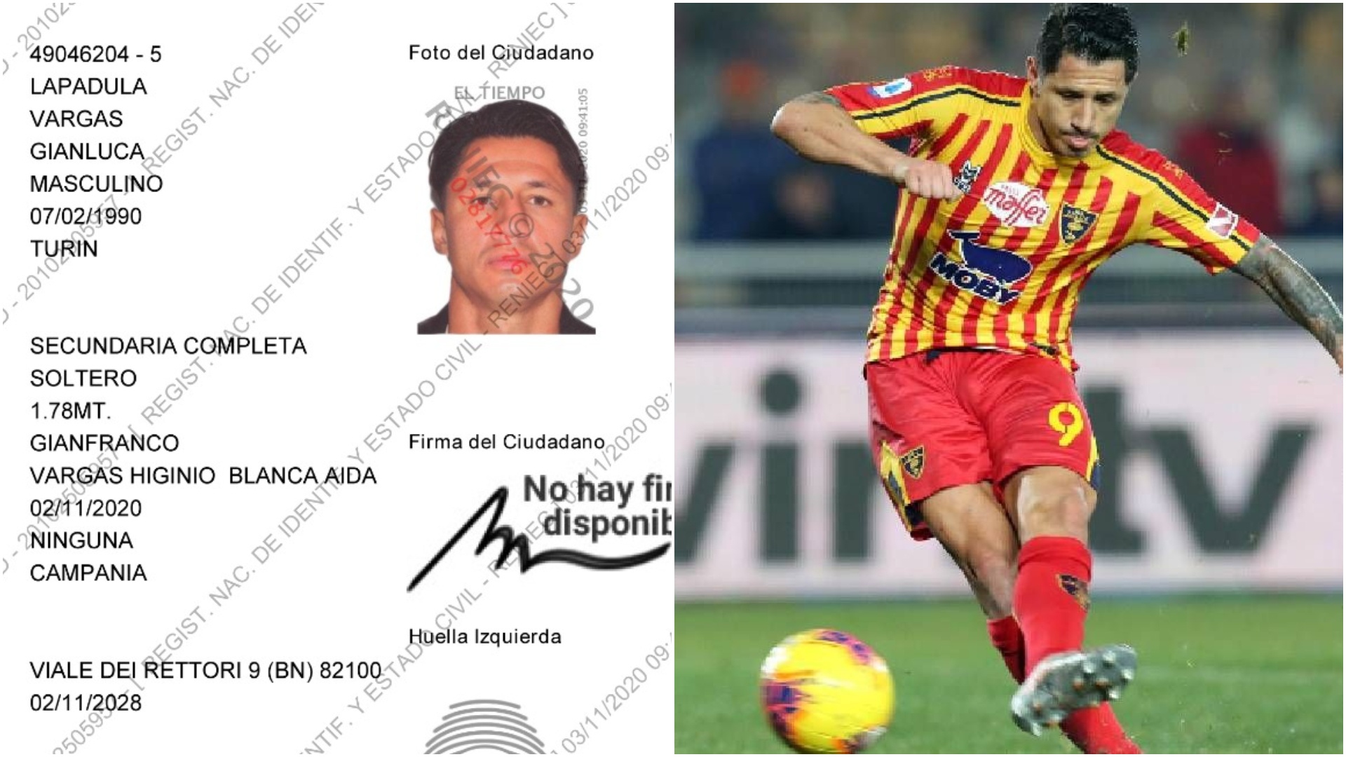 Gianluca Lapadula el delantero del Benevento de la serie A del fútbol italiano convocado por Ricardo Gareca a la Selección Peruana, ya cuenta con una ficha en el Registro Nacional de Identificación y Estado Civil (Reniec).