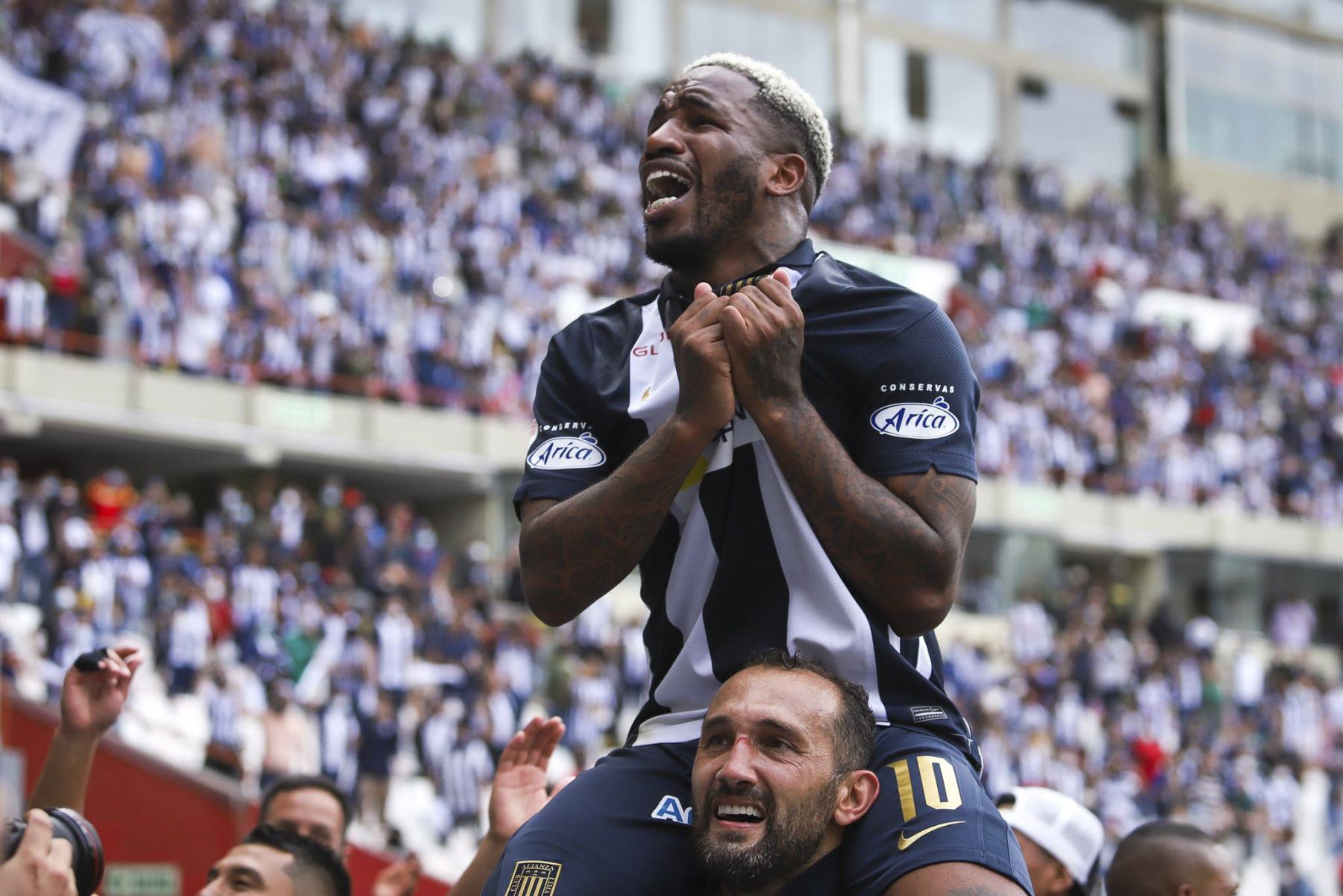 Farfán celebró el vigésimo cuarto campeonato nacional de Alianza Lima muy efusivamente con el delantero argentino Hernán Barcos, que ha sido la estrella del equipo blanquiazul en ataque durante toda la temporada.