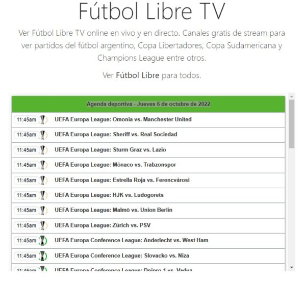 Fútbol Libre TV es una plataforma online en vivo y en directo. Se pueden ver canales gratis de stream para sintonizar en directo los partidos del fútbol argentino, Copa Libertadores, Copa Sudamericana y Champions League de hoy, gratis y por internet, de manera online.