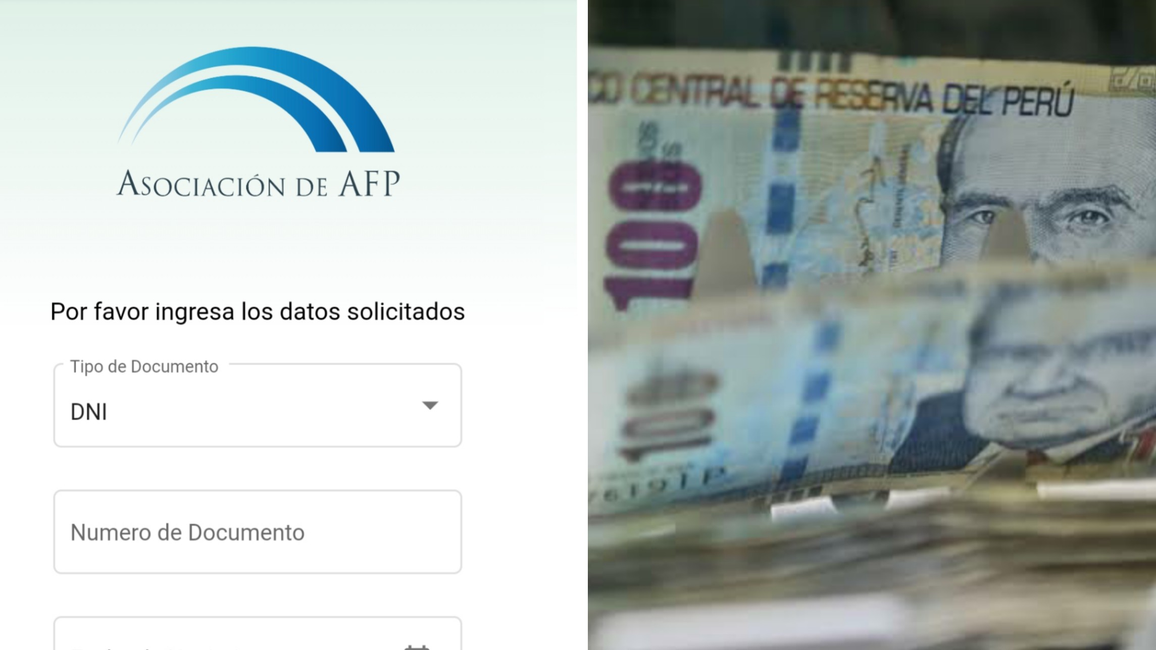 - Si accede al retiro y le corresponde entrar a la web según el cronograma establecido, se le solicitará que ingrese el número de un documento que identifique al afiliado (hay varias opciones). Además, debe consignar su fecha de nacimiento.