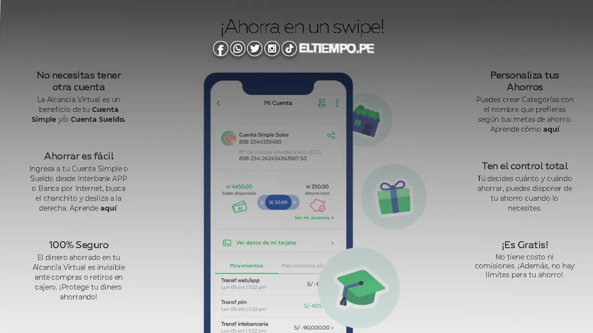- 100% seguro: Tus ahorros solo son accesibles a través de la Interbank APP o la Banca por Internet.