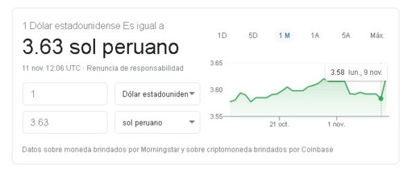 El dólar comienza la mañana de este miércoles 11 de noviembre con una cotización de S/ 3.629 a nivel interbancario, su precio más alto en 18 años.