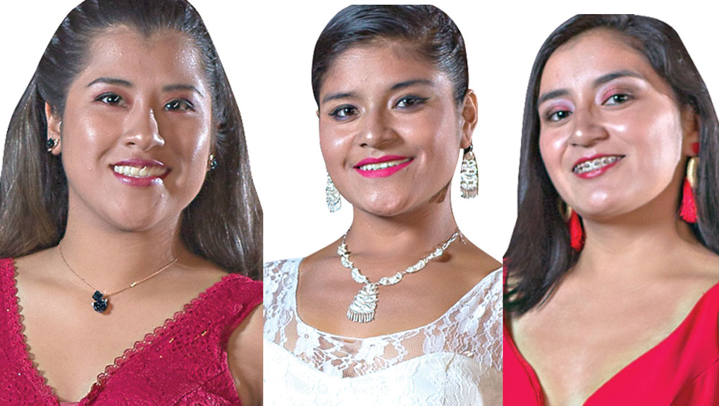Asimismo, participan Sandra Cortez Mija, quien representa al sector Yacupampa; María del Cielo Calle Calle, quien es la bella representante de la zona centro, y Yohana Tocto García, representando al barrio San Sebastián.