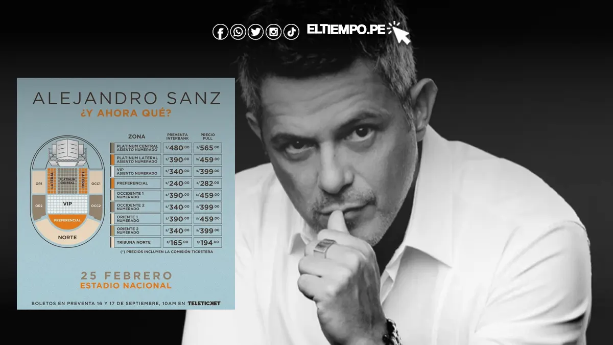 Las entradas Alejandro Sanz febrero 2026 en Perú se pusieron a la venta de manera exclusiva en la plataforma oficial de Teleticket. Tanto la preventa como la venta general se realizaron únicamente a través de su página web y puntos autorizados.