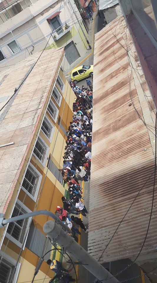 Nuestros lectores nos reportan que en la calle Huánuco de la ciudad de Piura, hay una acumulación de gente «peleando por turnos» en la cola para cobrar un bono otorgado por el Gobierno.