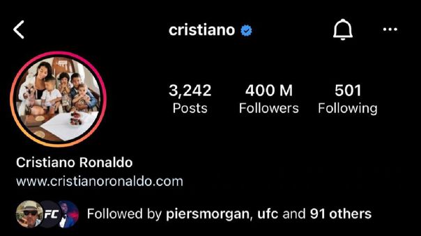 El jugador del Manchester United es la segunda cuenta con más seguidores del mundo, solo por debajo de la cuenta propia de Instagram, que posee 469 millones de seguidores.
