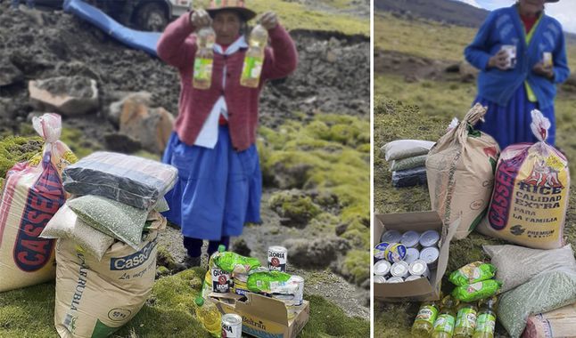 Entre los productos de primera necesidad entregados a familias en situación de pobreza figuran un saco de arroz, 35 kilos de azúcar, 15 latas de atún y muchos más. El valor de cada canasta supera los 400 soles.