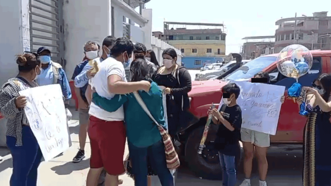 En tanto, Franco dijo sentirse muy contento y feliz por el buen trato que recibió en el nosocomio de Sullana. Él fue recibido con mucho entusiasmo, emoción y algarabía por sus familiares.