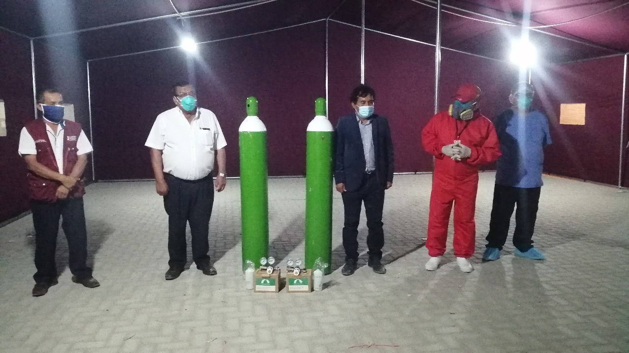 Ante el incremento de contagios y muertes en Sechura, causa del Coronavirus, la Comunidad San Martín de Sechura donó 22 balones de oxígeno y 2 carpas completamente equipadas.