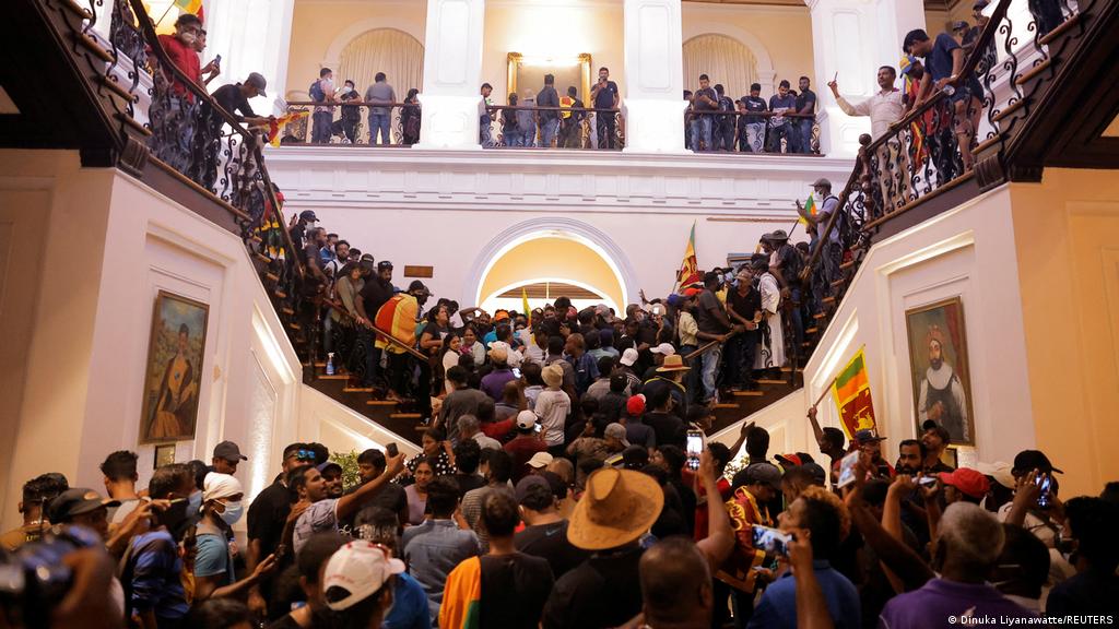 Cientos de personas forzaron el fin de semana la entrada del palacio presidencial de Sri Lanka y obligaron al presidente Gotayaba Rajapaksa a abandonar precipitadamente el lugar, luego de que anunciase que renunciará al cargo el próximo miércoles.