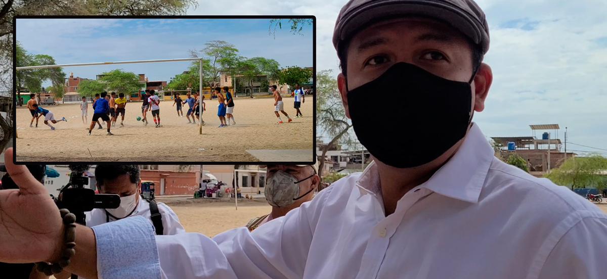 Mientras se realizaba una actividad, por parte de la Municipalidad de Piura, en el parque San José, un grupo de jóvenes practicaba deporte sin cumplir con ningún protocolo de bioseguridad pese al estado de emergencia.