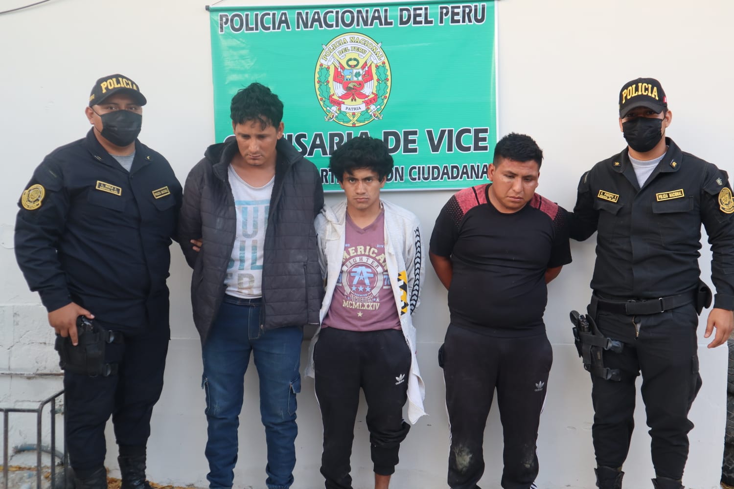 Tras realizar una redada y un cerco perimétrico en la zona, el personal de la PNP con apoyo de la CRPNP Rinconada Llicuar y CSPNP Sechura, lograron la ubicación y captura de los autores del asalto en el Sector Las Orillas-Vice (altura del canal Biaggio Arbulú).