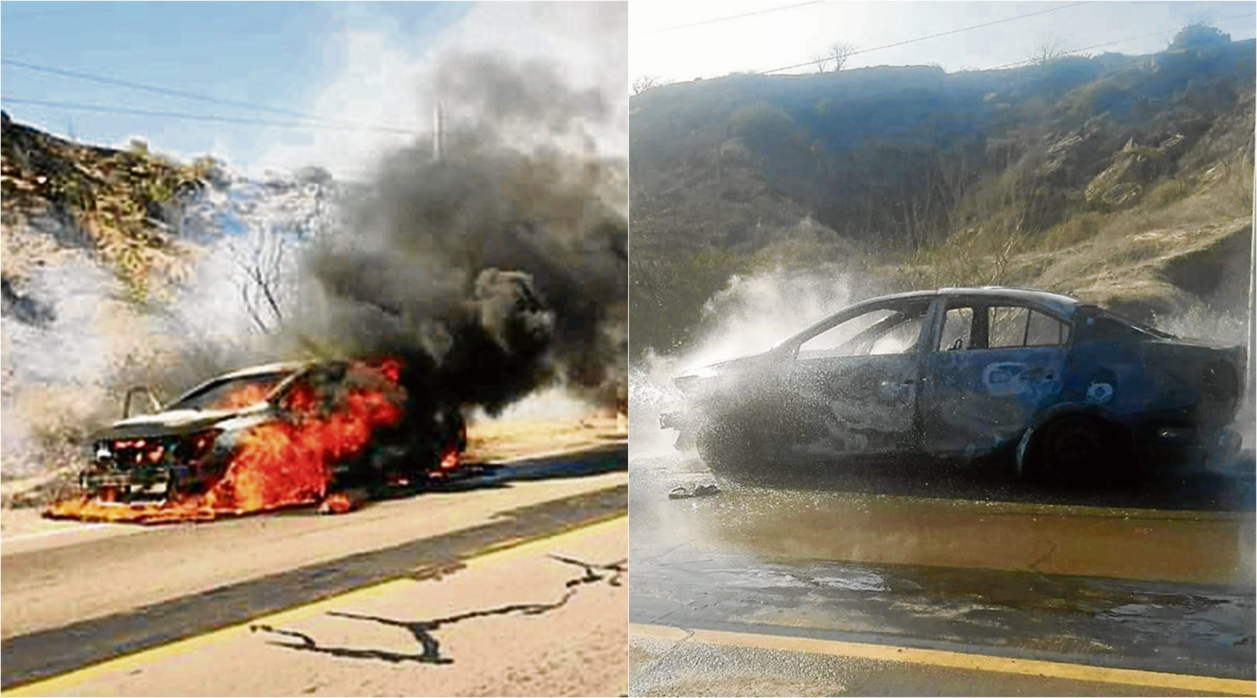 El automóvil Yaris de placa F9X-241 conducido por Carlos Calle Vega (66), que venía de Acapulco (Punta Sal) y se dirigía hacia Piura, ya había pasado la cuesta de Los Órganos, de pronto empezó a incendiarse por la maletera. Todo parece indicar que las causas del incendio habrían sido por fallas eléctricas en el vehículo; pero, afortunadamente el chofer se dio cuenta a tiempo consiguiendo salir a tiempo del auto junto a su esposa Flor Espinoza Carrión (58) y a su menor hija.