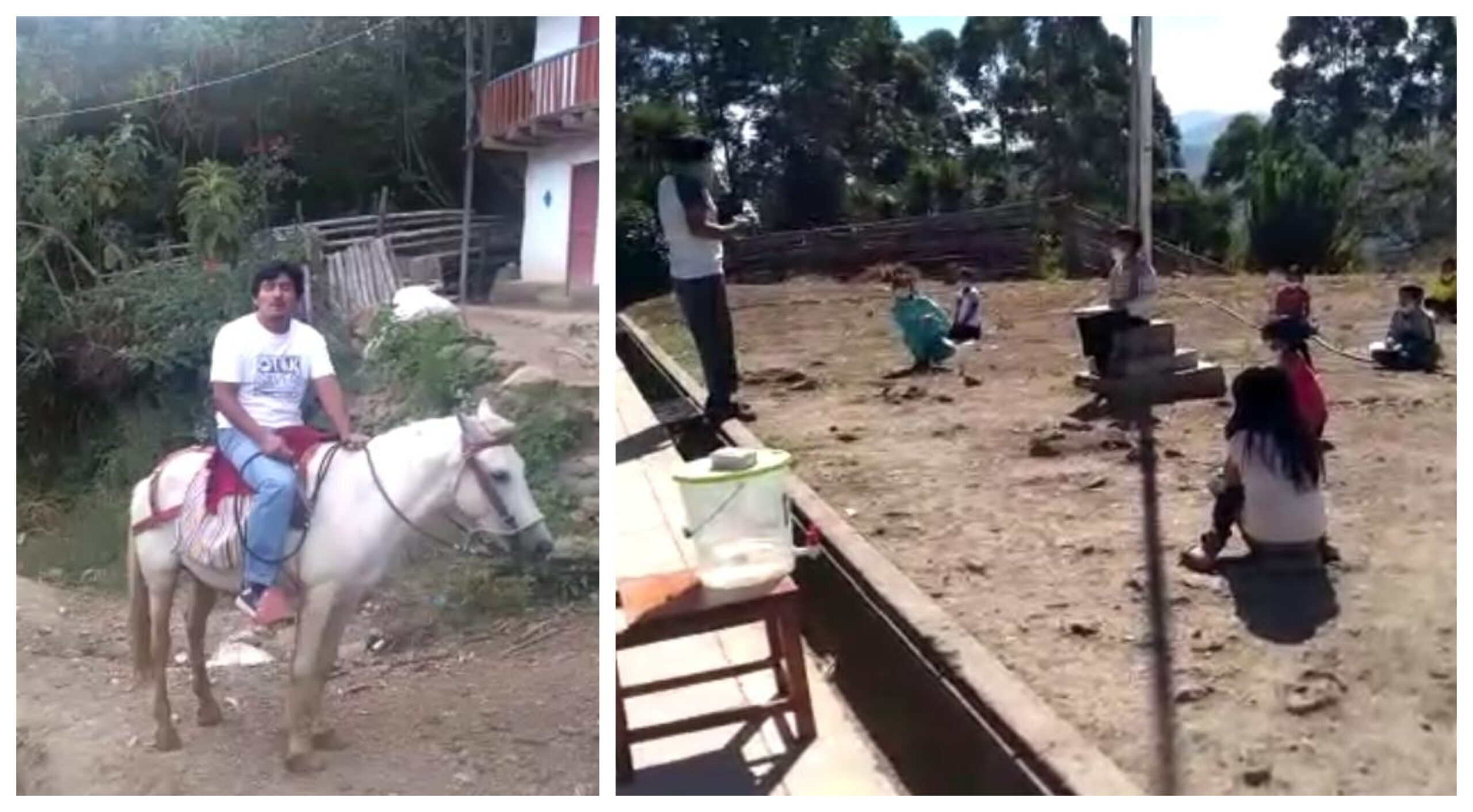 Un docente recorre varios kilómetros en su caballo para al llegar a las zonas rurales de Ayabaca, donde no llega señal de internet y las familias carecen de televisión y radio. Sentados en piedras y manteniendo la distancia, los estudiantes reciben sus clases de matemáticas, lenguaje, historia y geografía.