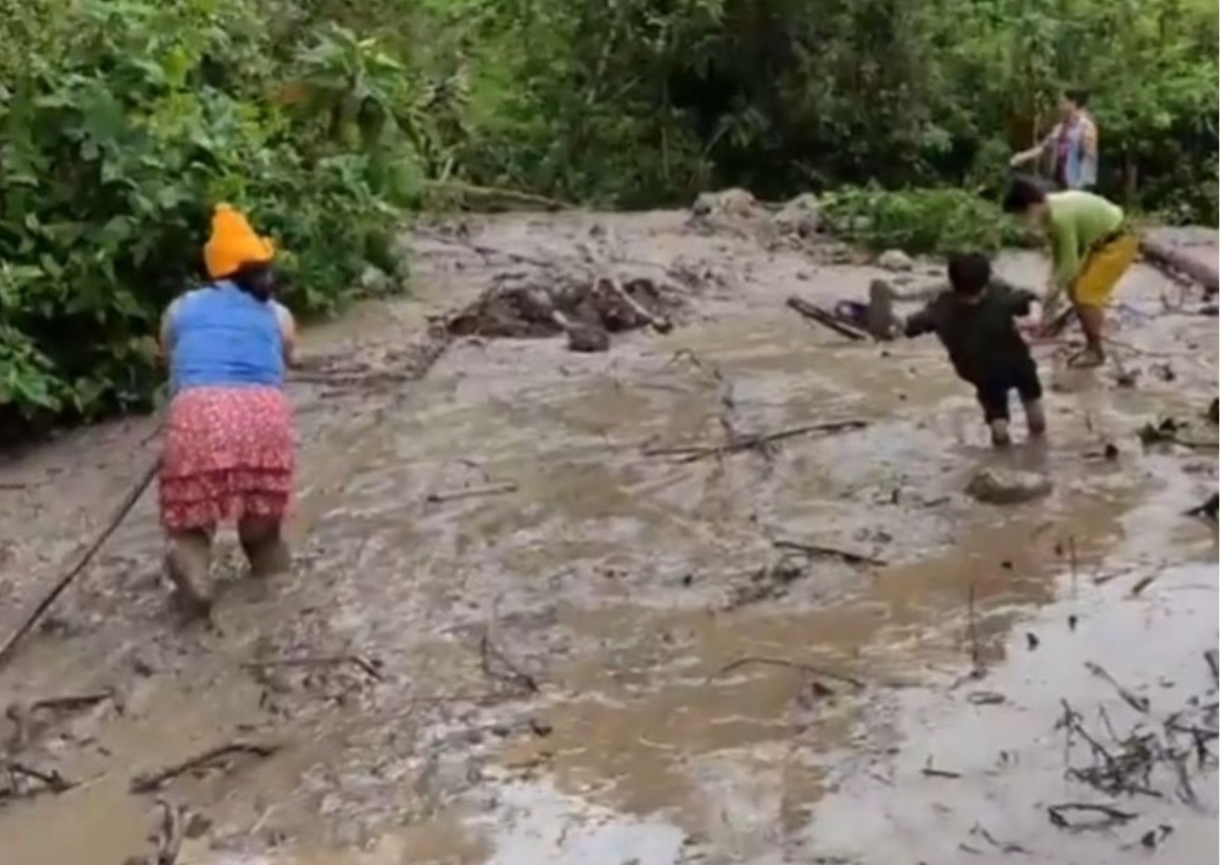 Algunos pobladores tratan de rescatar sus pertenencias y a la vez solicitan la ayuda a la oficina de Defensa Civil de la Municipalidad provincial de Ayabaca.