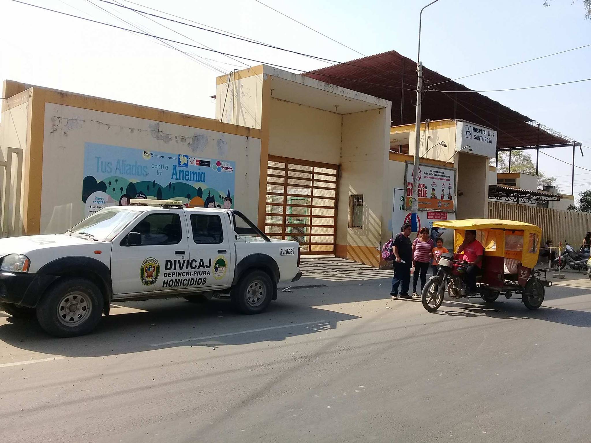 Posteriormente, el herido fue trasladado por sus vecinos y familiares hasta el Hospital Santa Rosa, donde quedó internado.