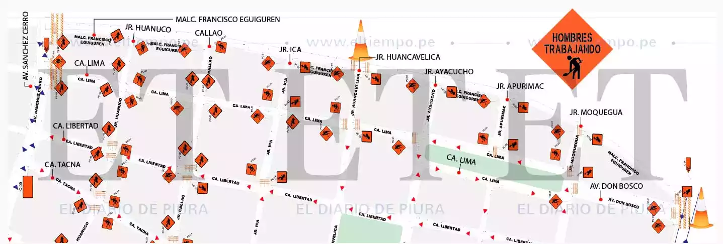 Este es el mapa de obras en el centro de Piura