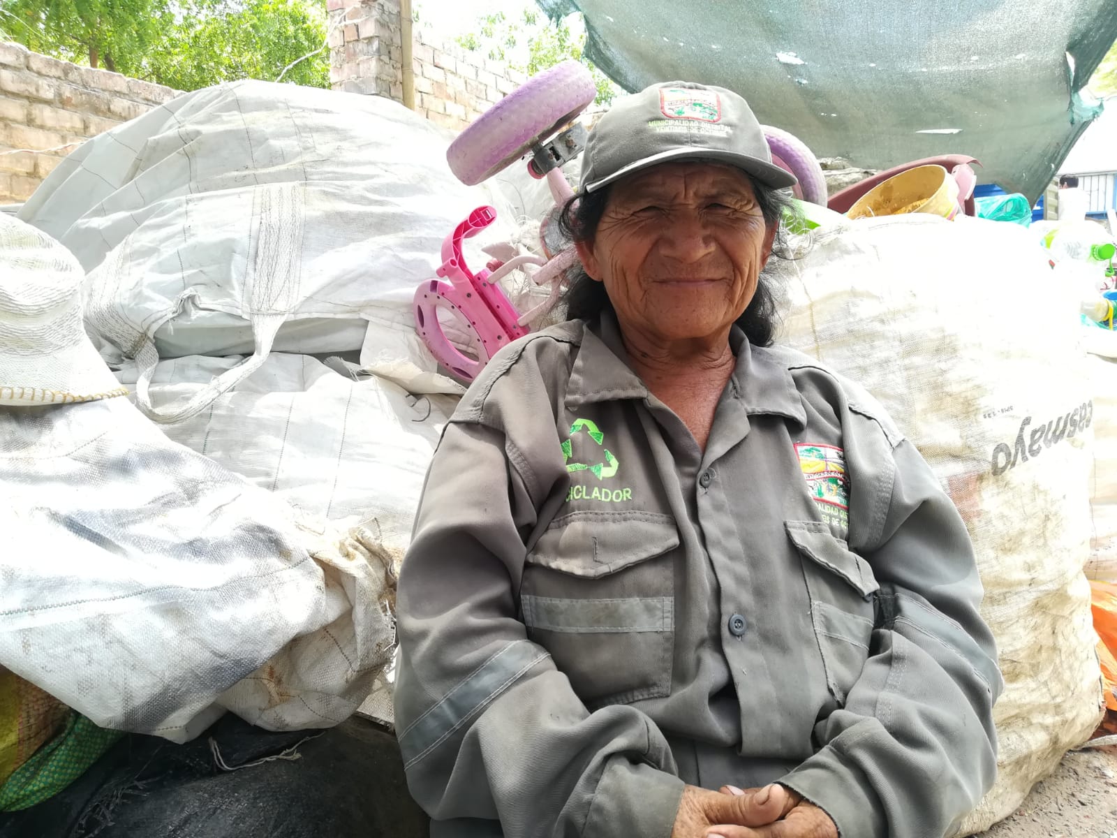 Dice tener la voluntad y fuerza de una joven, no desmaya en su día a día recorriendo distintos sectores de Veintiséis de Octubre, tocando las puertas de los hogares para que le entreguen la bolsa verde con producto reciclado.