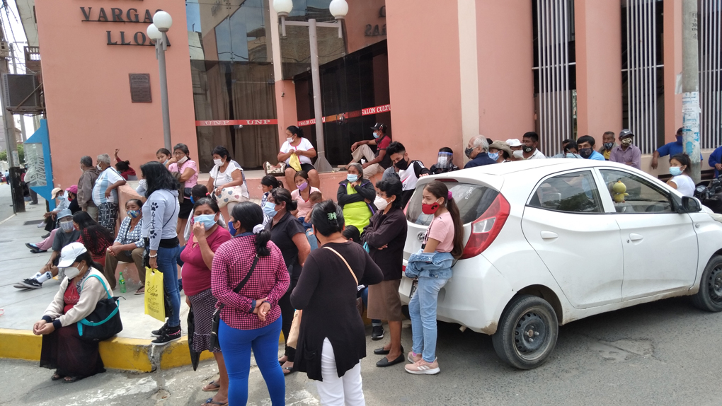 Los protocolos sanitarios para evitar el contagio del COVID-19, parece que ya no importan para ciertos piuranos que hacen cola para ingresar a los bancos o tiendas comerciales y no respetan el distanciamiento social.