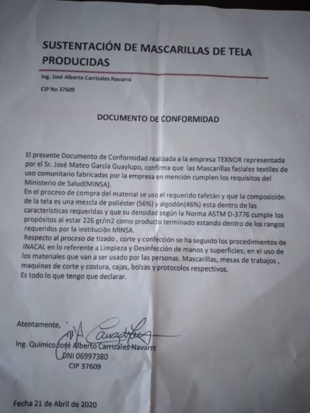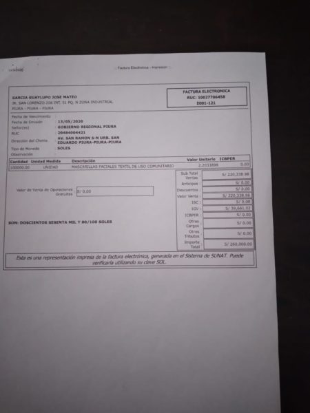 «Las cien mil mascarillas las confeccionamos hace aproximadamente tres meses, hemos entregado el producto […] Se dio la conformidad, repartieron el producto y hasta el momento no nos han cancelado […] fuimos prácticamente 40 microempresas que nos organizamos para preparar este producto […] no nos pagan, nos tienen meciendo», denunció José García Guaylupo, representante de la empresa Texnor.