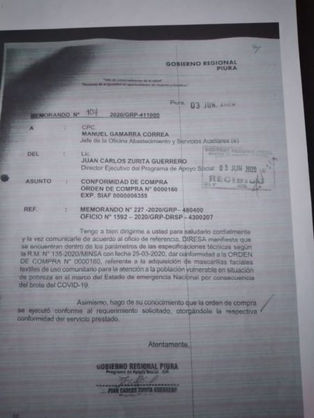 Magaly Guerrero Paucar es otra de las microempresarias afectadas, quien manifestó que la compra de mascarillas fue aprobada por el Consejo Regional y la Diresa y finalmente, el área usuaria fue la que dio la conformidad. Aseguró que la entrega del producto fue entregado en el plazo establecido.
