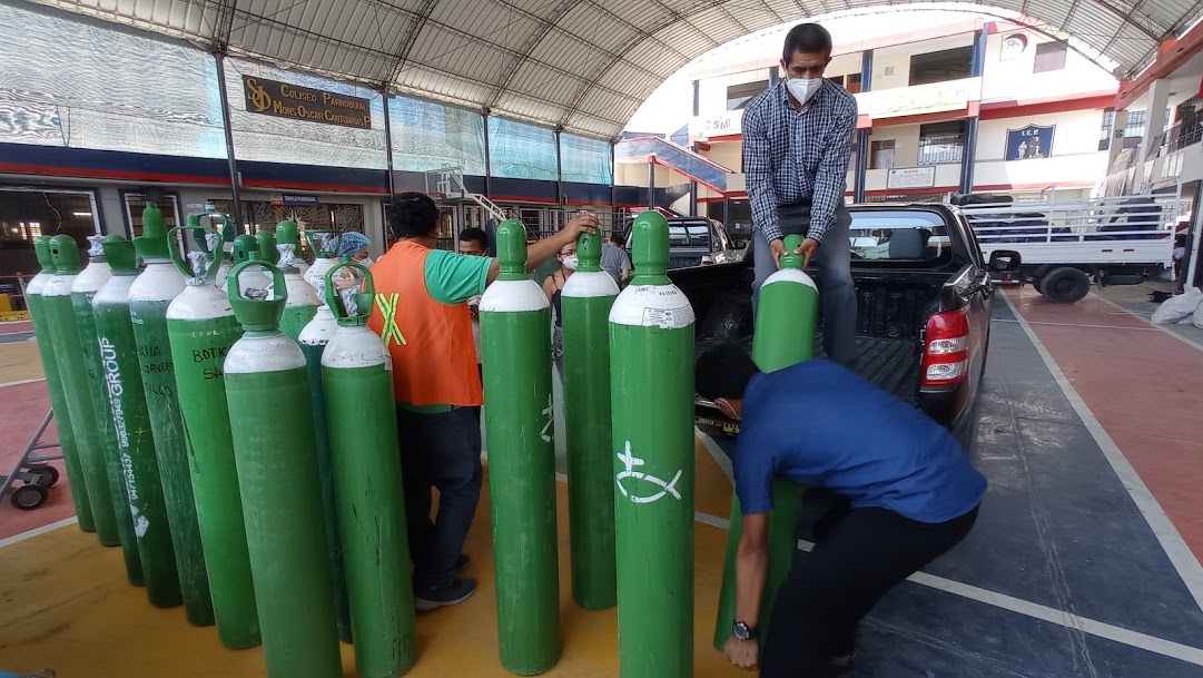 La parroquia San José, a cargo del sacerdote Luis Arrasco es la esperanza de muchos. Los curas bajo los lemas de Recargando Esperanza u “Oxigenemos Piura” trabajan día y noche buscando oxígeno para llevar a los pacientes que están en sus casas. Antes, en Piura les llenaban 90 balones cada dos días, ahora tienen que ir a Paita para recargar las botellas. “Llevamos el lunes cuarenta tanques y nos los van a entregar hoy (viernes)” señala el sacerdote Arrasco. En Piura el oxígeno ya se agotó.