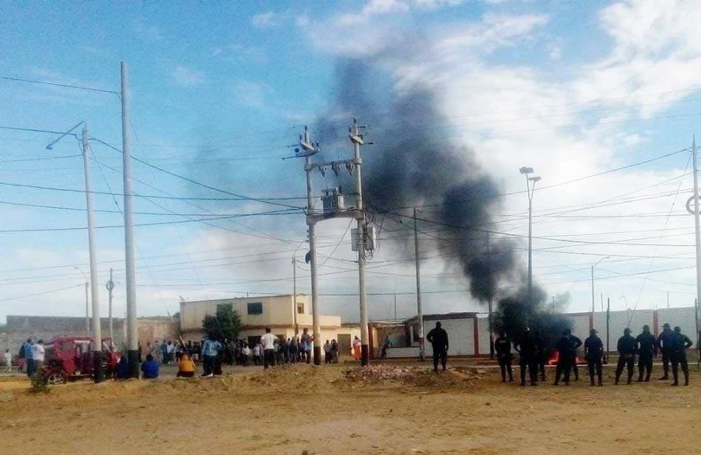 Los manifestantes hicieron una marcha pacífica en el frontis de la empresa que es resguardada por contingentes policiales de la provincia, Sullana y Piura.
