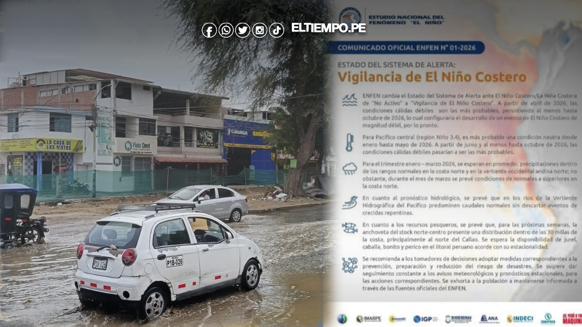 La Comisión Multisectorial Encargada del Estudio Nacional del Fenómeno El Niño (ENFEN) anunció el cambio en el estado del sistema de alerta climática ante un posible El Niño Costero, el cual pasará de la condición de “No activo” a “Vigilancia de El Niño Costero”, según lo establecido en su Comunicado Oficial N.° 01-2026. Esta decisión se basa en los recientes análisis técnicos sobre el comportamiento de las temperaturas del mar frente al litoral peruano.