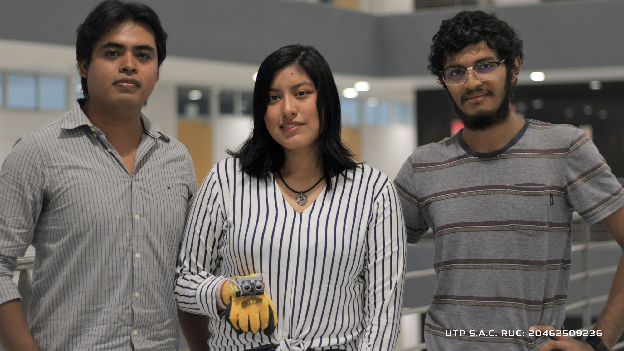 Carlos Chiroque, Max Rivera, Mayumi Torres, Fabrizio Vásquez y Ronald Córdova de la carrera de Ingeniería de Sistemas e Informática del Campus UTP Piura, bajo la supervisión del docente Yuri Chuquicondor, trabajaron en un innovador proyecto que busca dar soporte a personas con dificultades en la visión o invidentes.