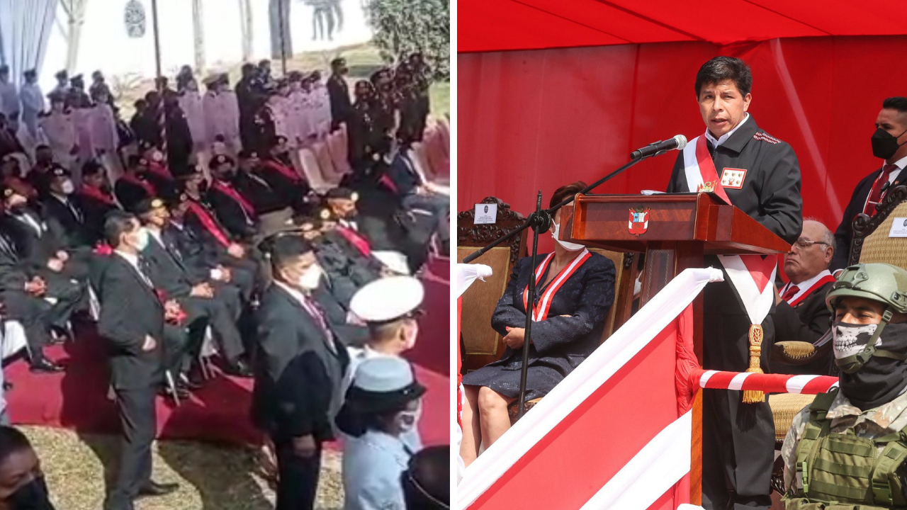 Sin embargo, un incidente durante el evento anual llamó la atención. Cuando el presidente Pedro Castillo hizo su ingreso al escenario, el grupo de ex comandos decidió no ponerse de a pie para hacer el saludo formal. Además, otros cinco se retiraron del evento y salieron por la parte trasera.