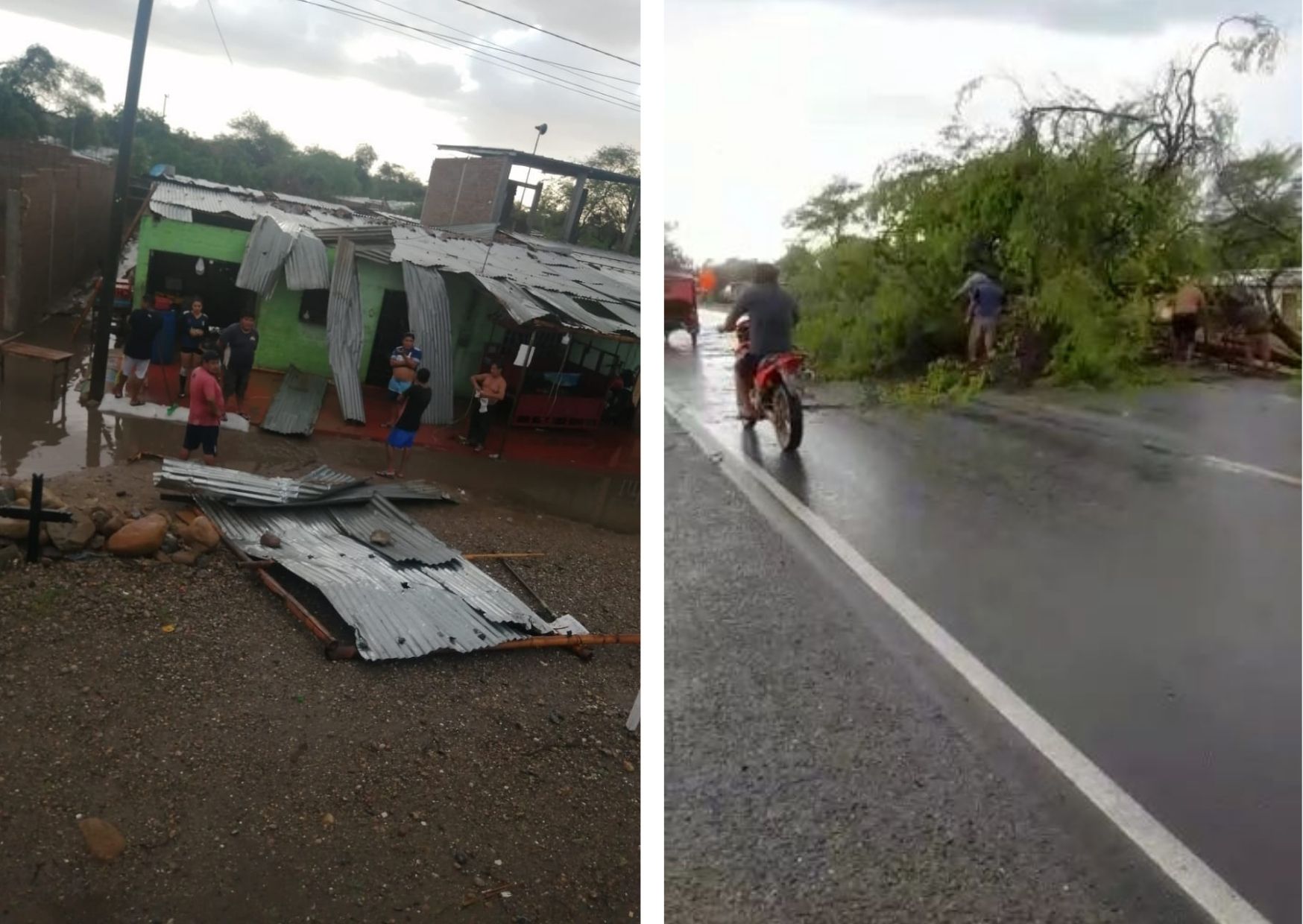 Las intensas precipitaciones acompañadas de ráfagas de viento ocasionaron la caída de postes de energía eléctrica, árboles; así como también, techos de calamina y demás daños en viviendas de la mencionada localidad.