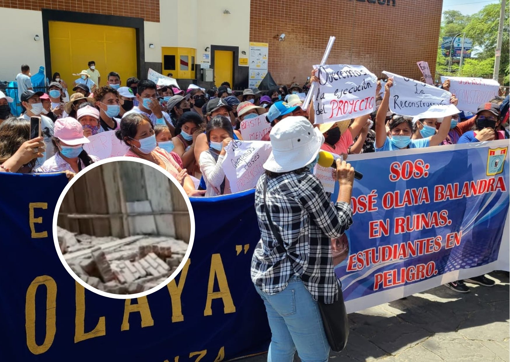 Por tercera vez, los padres de familia y docentes del colegio José Olaya Balandra del distrito de Veintiséis de Octubre protestaron en el frontis del Gobierno regional para que reconstruya el cerco perimétrico de la institución.