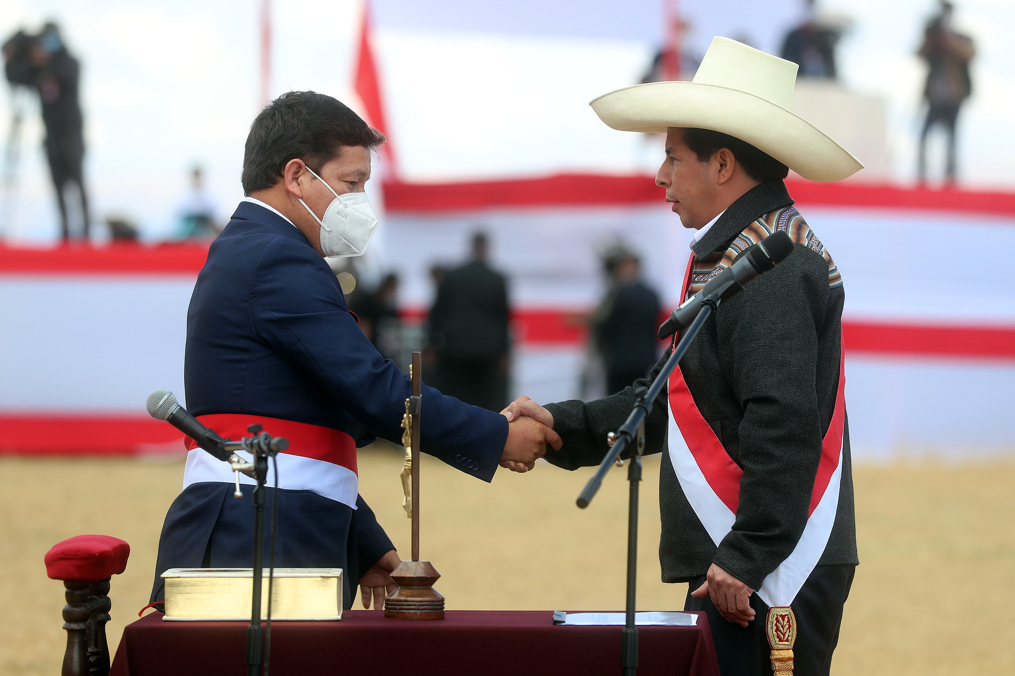 El presidente @PedroCastilloTe tomó juramento a Guido Bellido Ugarte como titular de la Presidencia del Consejo de Ministros. pic.twitter.com/aKF89PtrT9