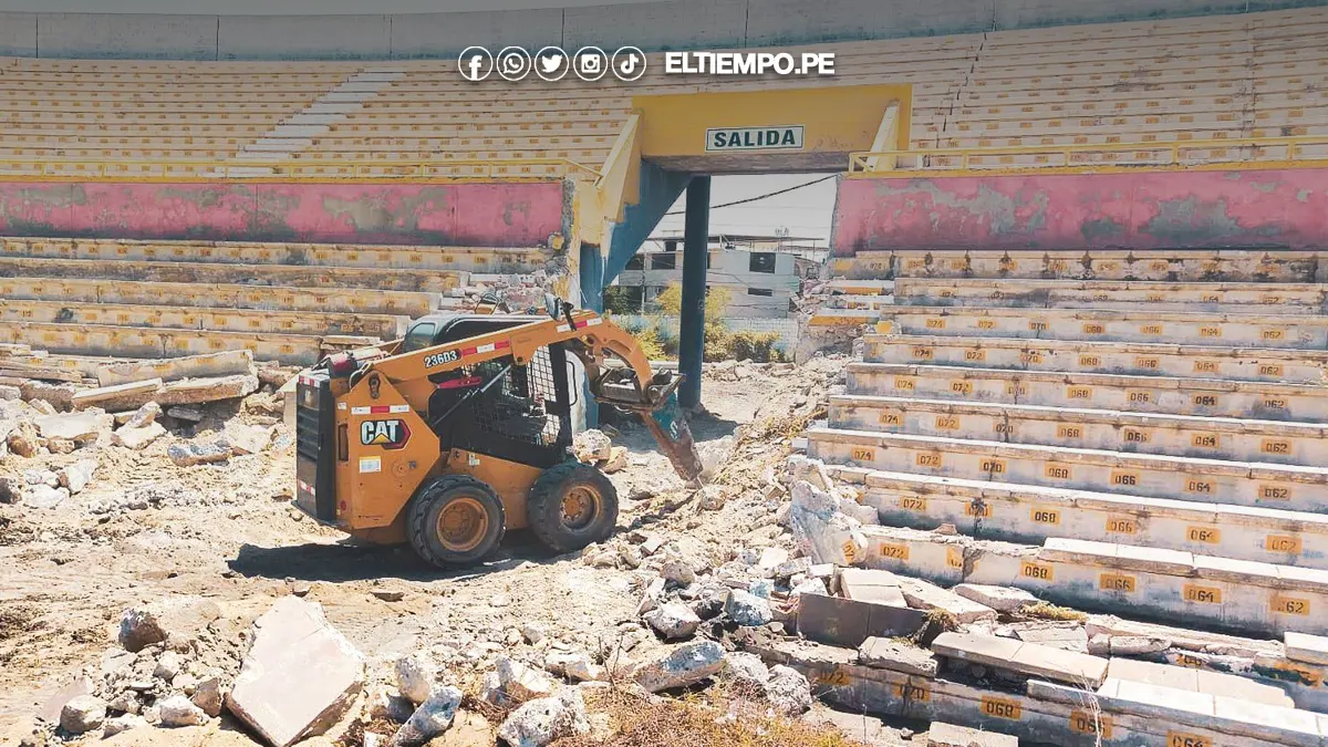 Desde el lunes 21 de julio, maquinaria pesada y cuadrillas de obreros comenzaron con los trabajos de desmontaje y demolición parcial del emblemático estadio Miguel Grau de Piura.