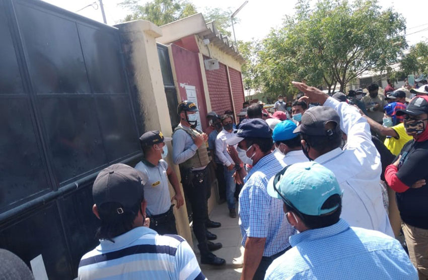 Un promedio de 200 agricultores con carteles y altoparlantes se apostaron en los exteriores de la Junta de Usuarios San Lorenzo con la finalidad de solicitar una reunión con el gerente, Juan Gómez Murillo para buscar una salida ante la crisis hídrica que están atravesando, ya que cerca de tres mil hectáreas de este cereal estarían por perderse.