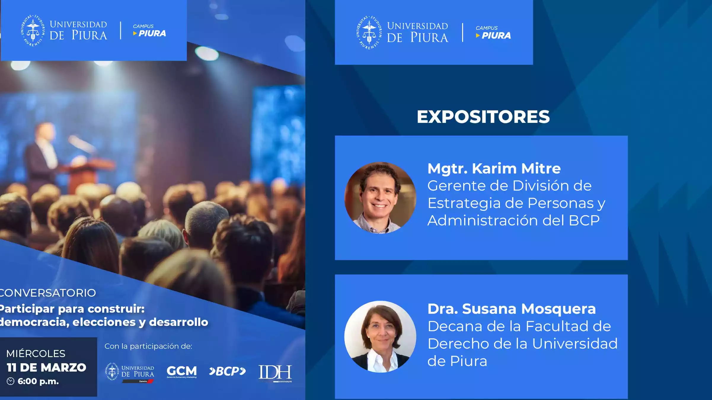 Este evento será un conversatorio guiado, que combinará exposiciones breves, diálogo moderado entre los ponentes y participación activa del público. Esta actividad busca favorecer el intercambio de ideas entre la academia, el sector privado y la comunidad piurana.