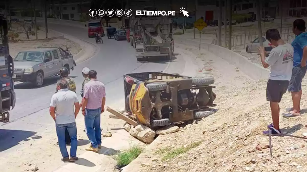 El violento accidente se registró pasado el mediodía de ayer en la pista de subida a Negritos, entre las urbanizaciones James Storm y Los Jazmines. Por presuntas fallas mecánicas en los frenos, el pesado montacargas color amarillo que descendía la vía se despistó y terminó cayendo en una canaleta. El chofer, Richard Alisson Calero Chiroque (38), no tuvo tiempo de lanzarse a tiempo quedando atrapado.