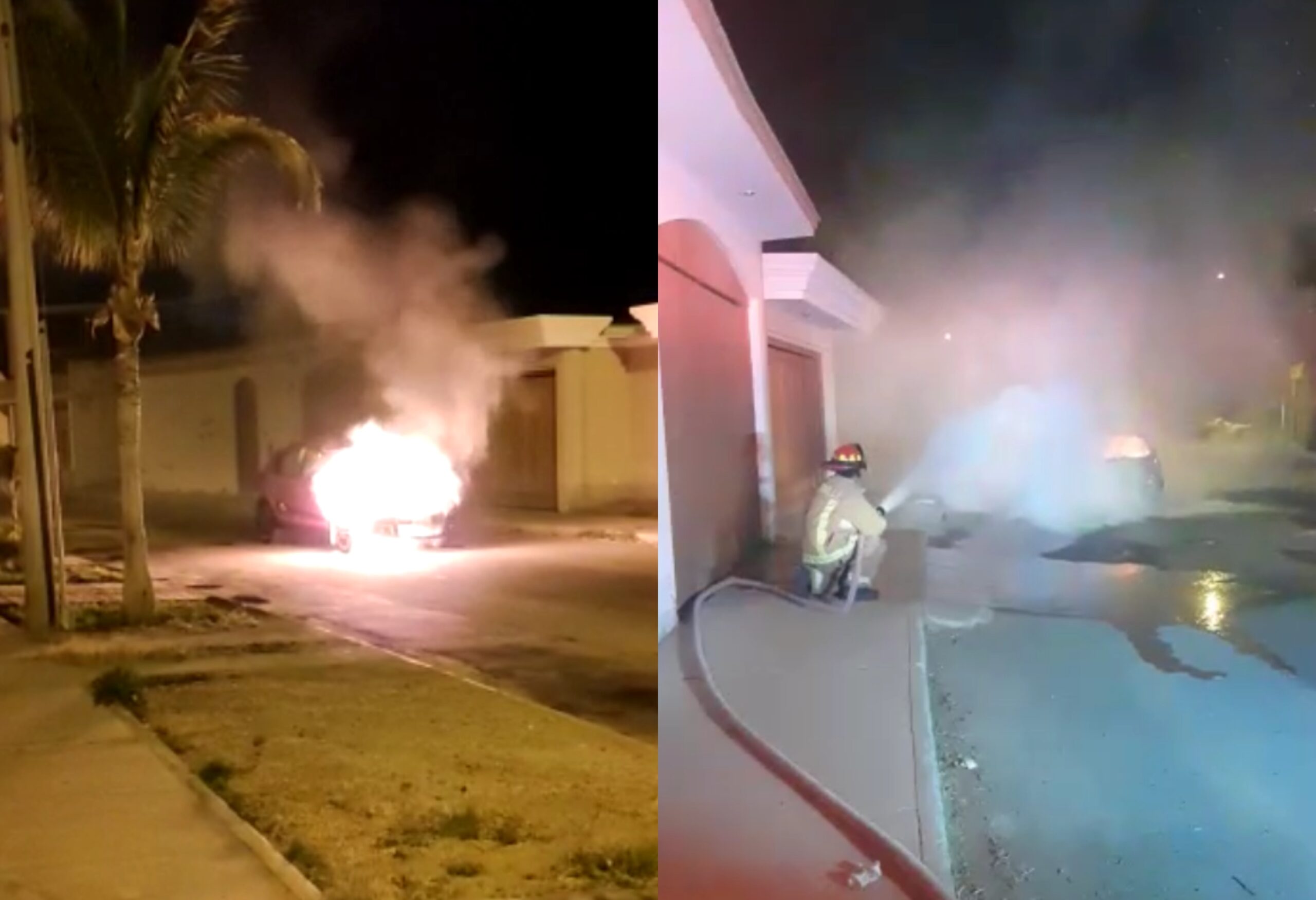 En vídeos compartidos por nuestros lectores logra ver que dos bomberos, que acudieron al llamado de los vecinos, hicieron todos los esfuerzos para apagar las llamas.