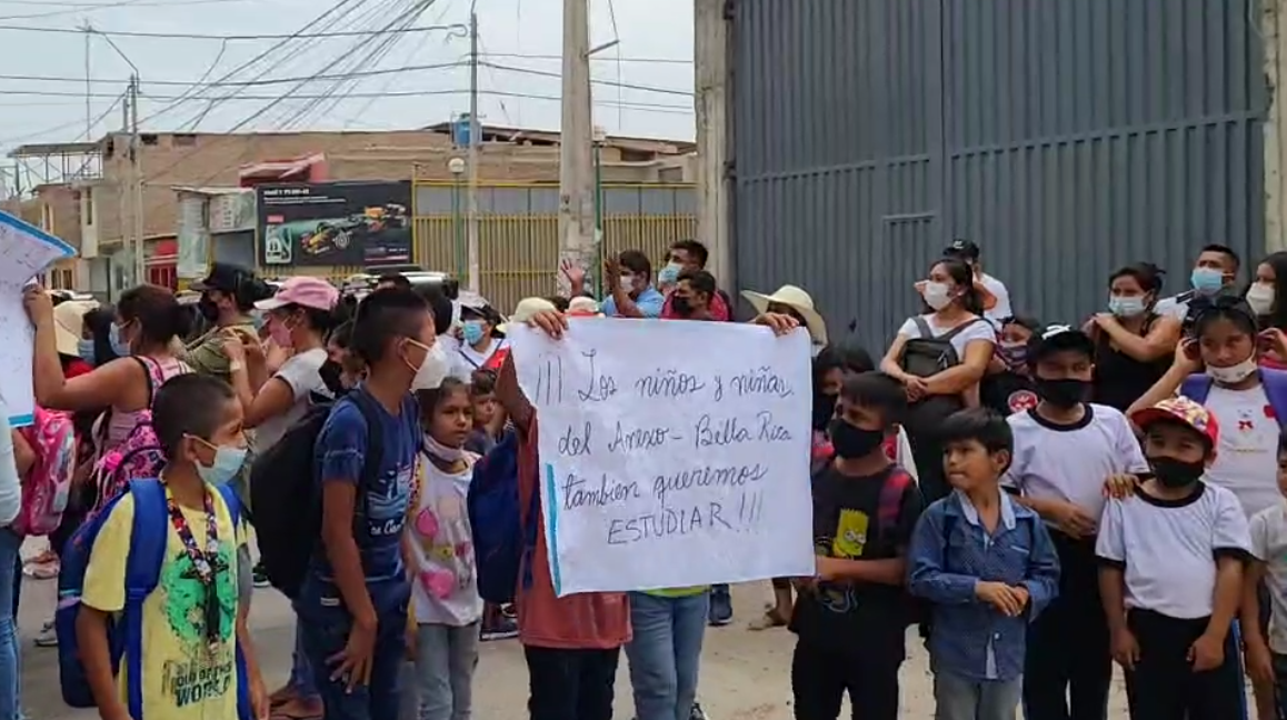 La institución educativa N° 15 035, de la UPIS Bella Rica (Castilla), no cuenta con los docentes suficientes para atender la demanda de 6 grados, perjudicando a casi 200 menores que ayer iniciaban sus clases, pero tuvieron que retornar a sus casas.