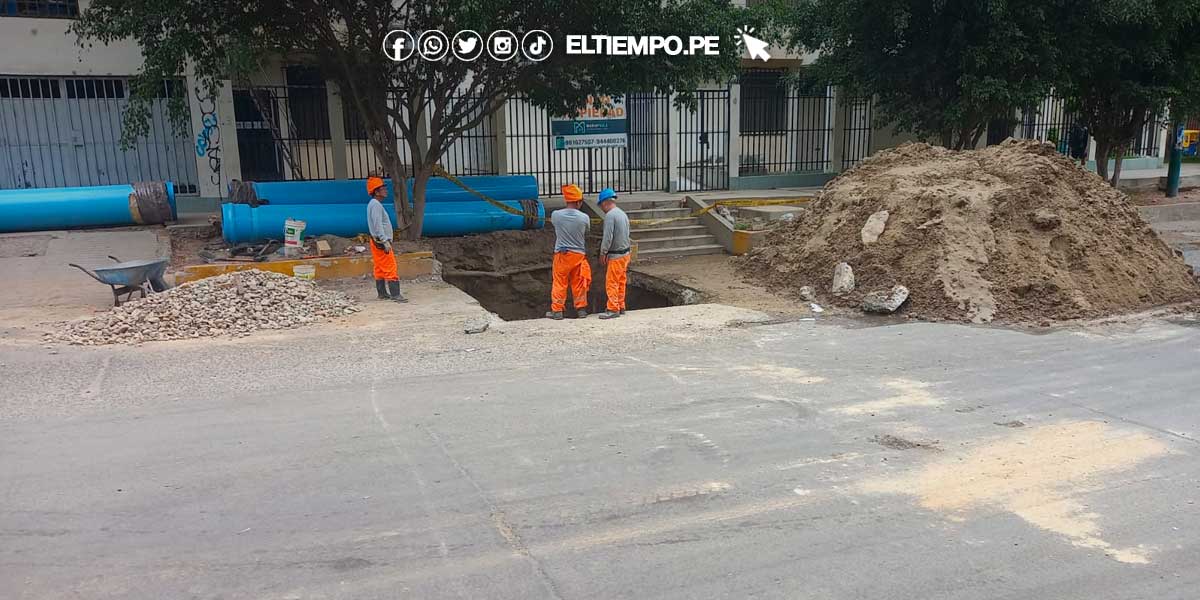 Las labores iniciaron este miércoles 31 con la excavación de esta parte de la vía. Aquí, se colocará una tubería importada de 800 metros lineales y una válvula de purga, las cuales trasladarán 160 litros de agua por segundo, desde la caja tormenta ubicada en el sector Asilo de Ancianos hasta el dren Sullana.