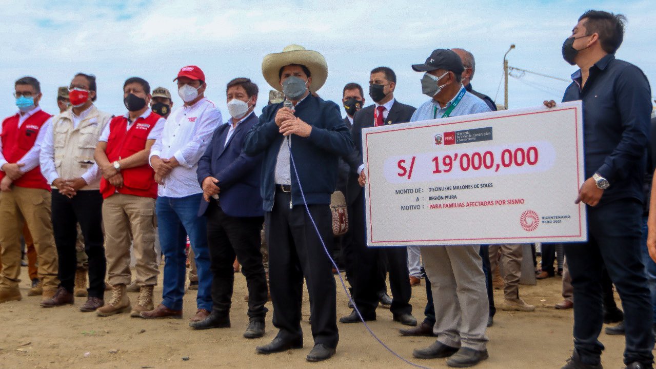 El presidente de la República, Pedro Castillo Terrones, anunció hoy que el Gobierno destinó 19 millones de soles para atender a los damnificados del reciente sismos ocurrido en la región de Piura.