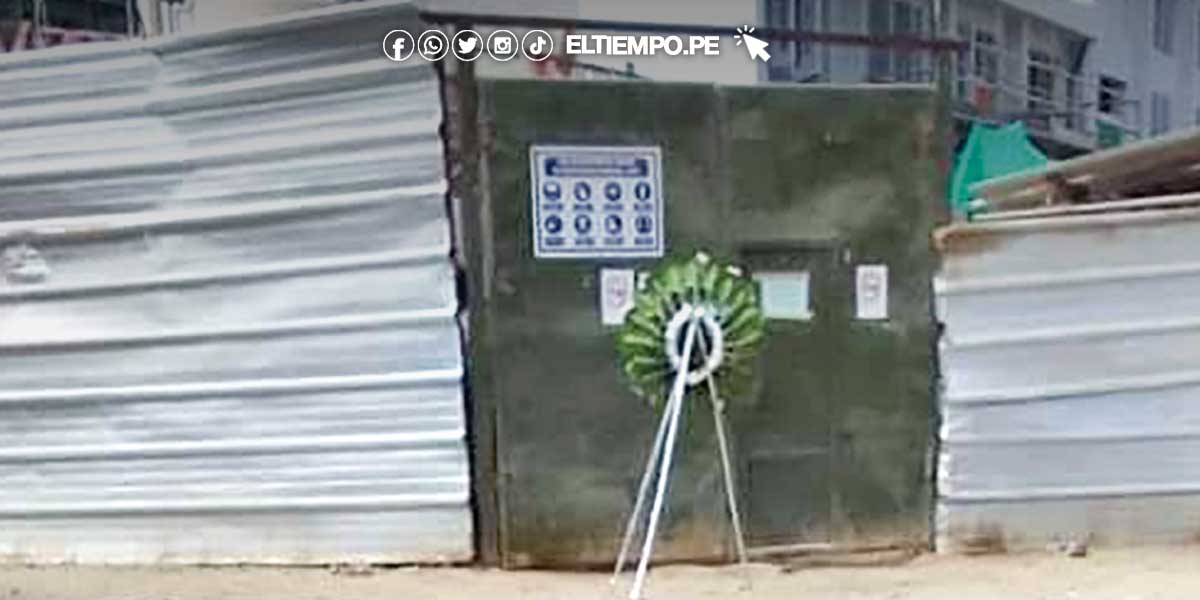 Una corona para difuntos fue dejada por un grupo de delincuentes que intentan generar miedo y terror en los encargados de una obra de construcción de un colegio. No se descarta que los estén extorsionando para obtener cupos de trabajo y chalequeo.