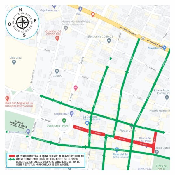 La comuna provincial de Piura informó que desde esta semana, hasta el 07 de enero del 2022, se cerrarán de manera parcial ciertos tramos de la avenida Grau y calle Tacna, en el centro de la ciudad.