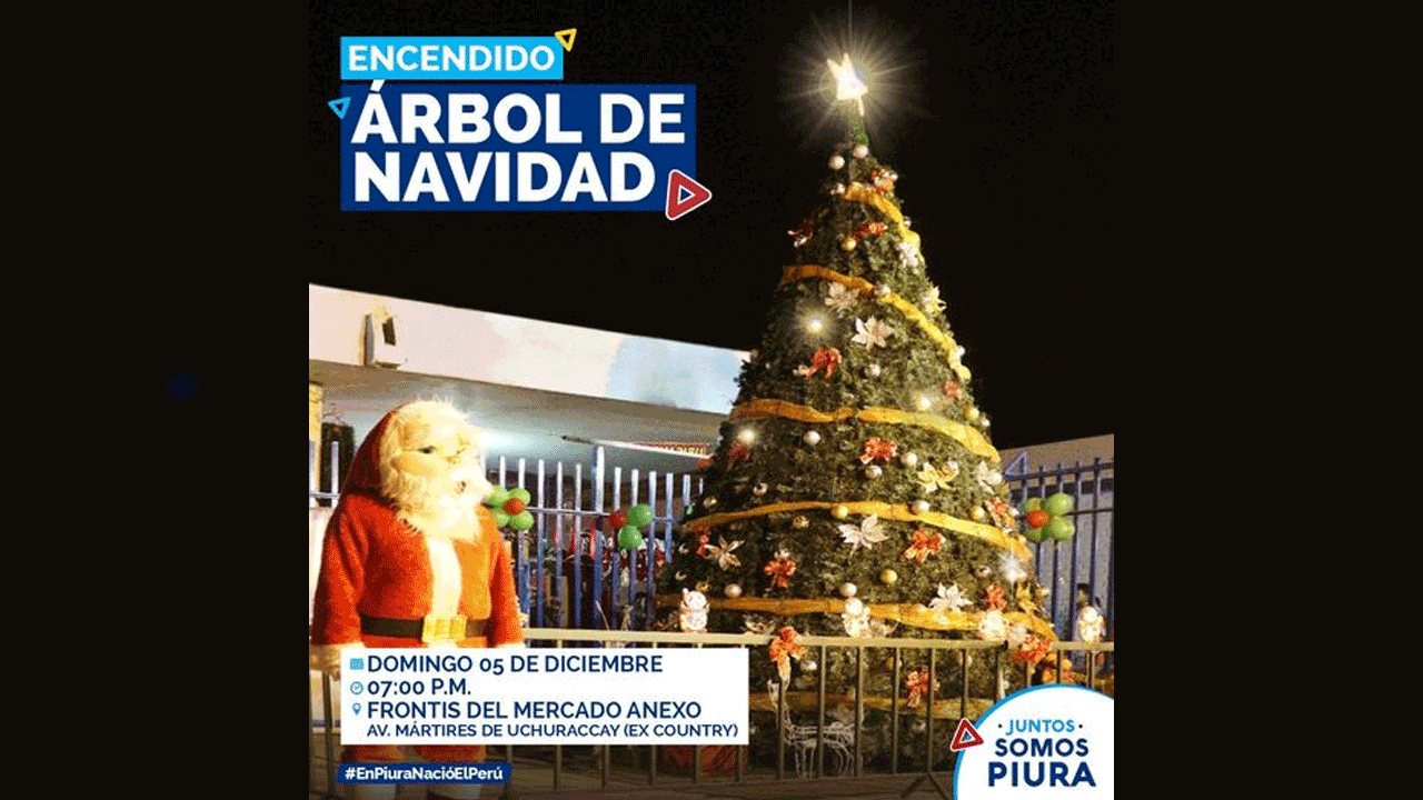 Como inicio de las actividades por las celebraciones de la Navidad, la Municipalidad Provincial de Piura encenderá este domingo 5 de diciembre, a las 7:00 p. m., las luces del árbol navideño .