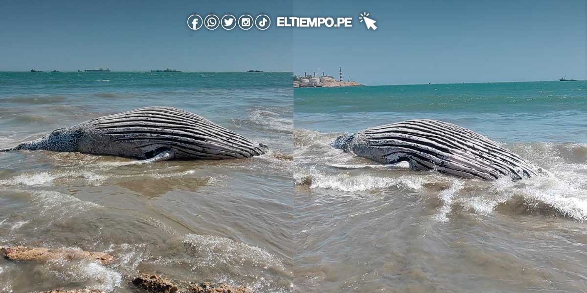 Esta mañana, vecinos del puerto de San Pedro, en la provincia de Talara, reportaron el cuerpo de un ballenato, la cría de una ballena jorobada, varada a inmediaciones del malecón.