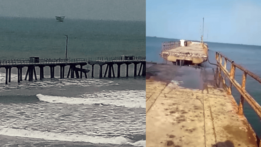 La mañana de este sábado se reportó un fuerte oleaje que habría producido la caída de una parte de la estructura del muelle artesanal Providencia, en la localidad de Negritos, distrito La Brea (Talara).