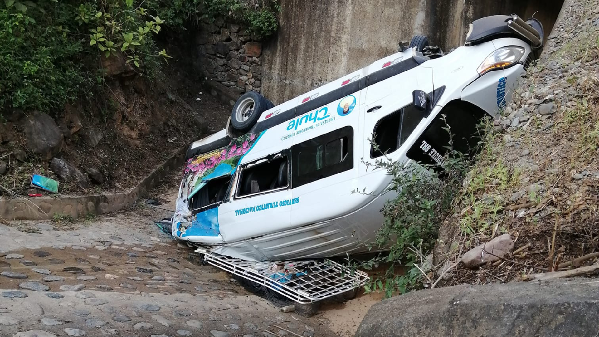 Una minivan color blanco de placa F5V-962 cayó a una alcantarilla en el kilómetro 71, en la carretera Buenos Aires a Canchaque, cuando se dirigía con destino a la provincia de Huancabamba.